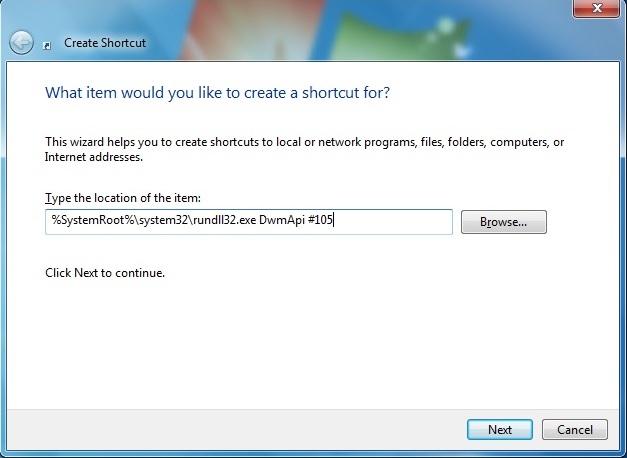 Windows 7- ը ունի մի շատ օգտակար ֆունկցիա: Եթե սեղմած պահեք Windows+Tab կոճակները միաժամանակ, ապա կհայտնվեն բոլոր բացված պատուհանները՝ 3D ձևով: Դա կարող եք կատարել նաև հետևյալ քայլերի հաջորդականությամբ. 1. Աշխատանքային սեղանի վրա սեղմեք մկնիկի աջ սեղմակով 2. Ընտրեք New --> Shortcut 3. Բացված պատուհանում գրեք %SystemRoot%\system32\rundll32.exe DwmApi #105 և սեղմեք Next կոճակը